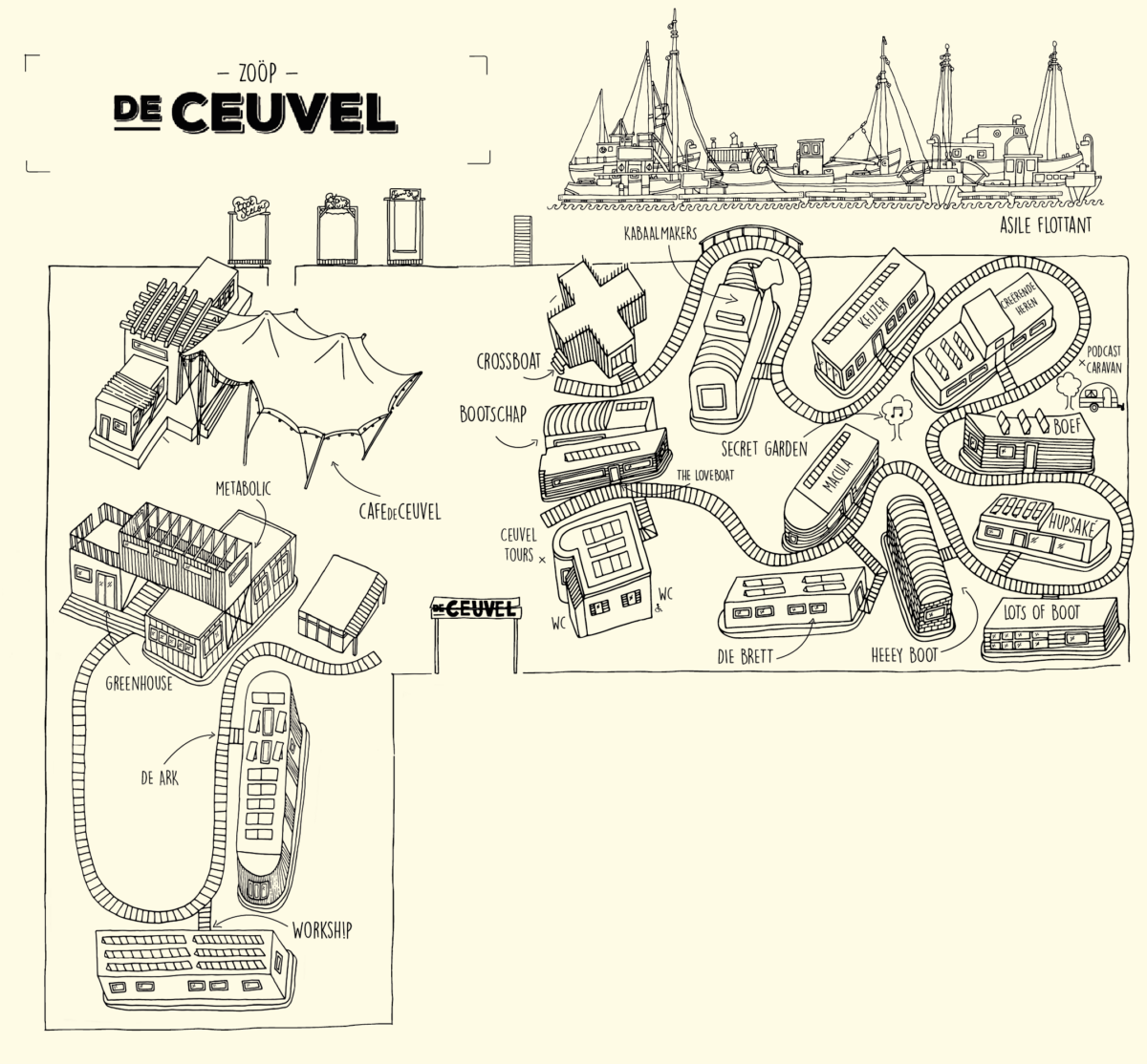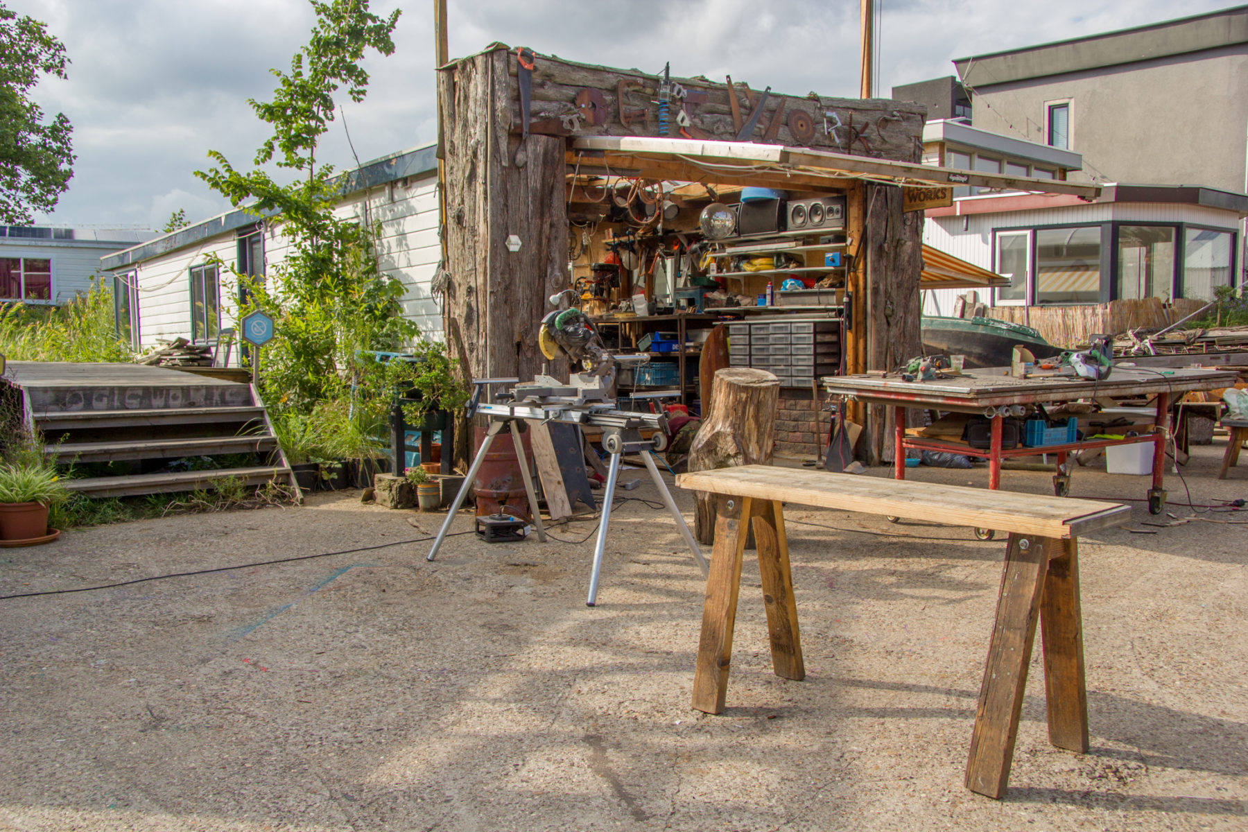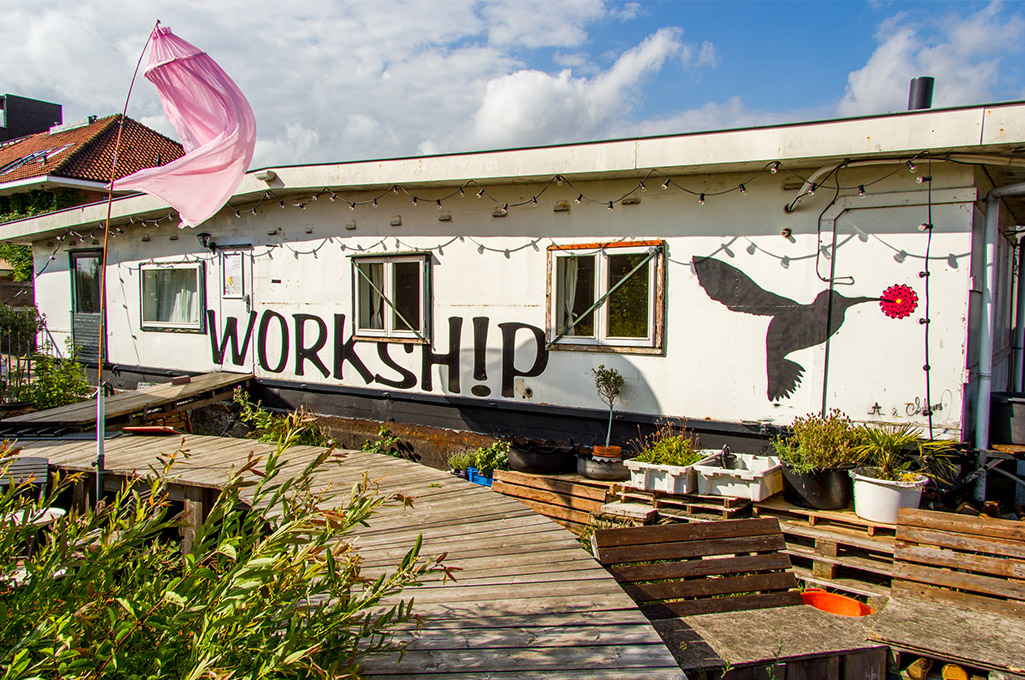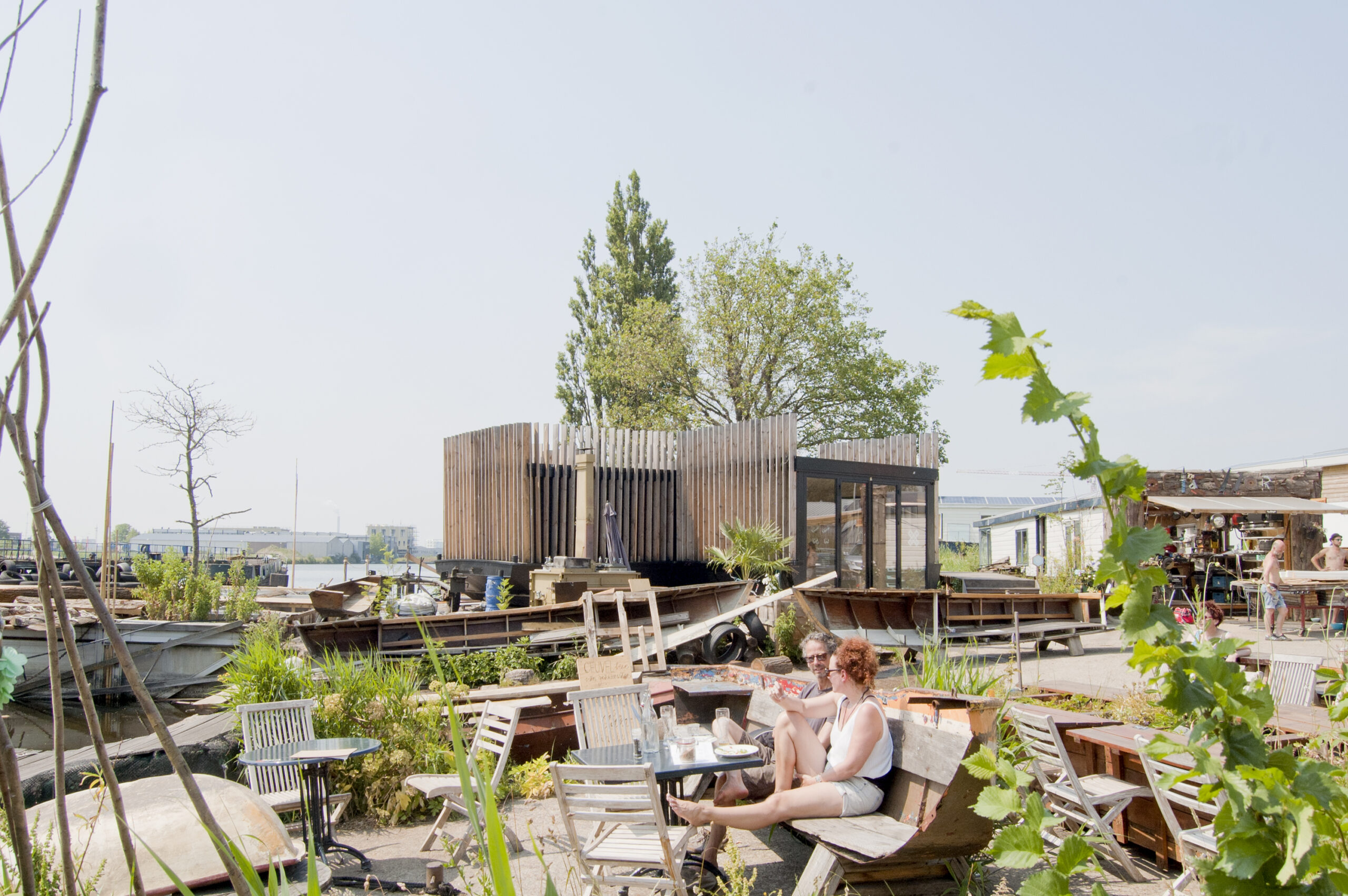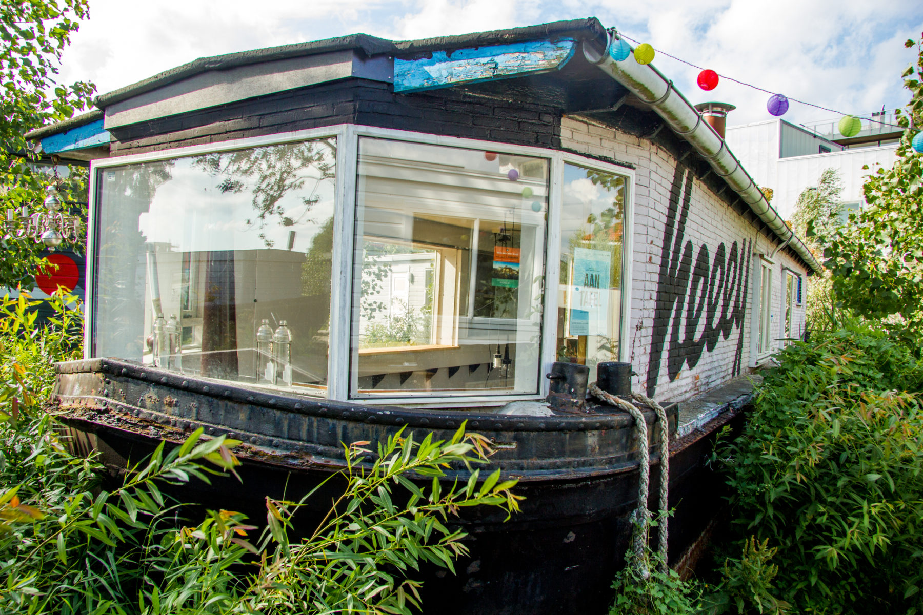 Asile Flottant is een verzameling karakteristieke hotelboten aangemeerd in het ondiepe water bij een creatieve hotspot De Ceuvel.